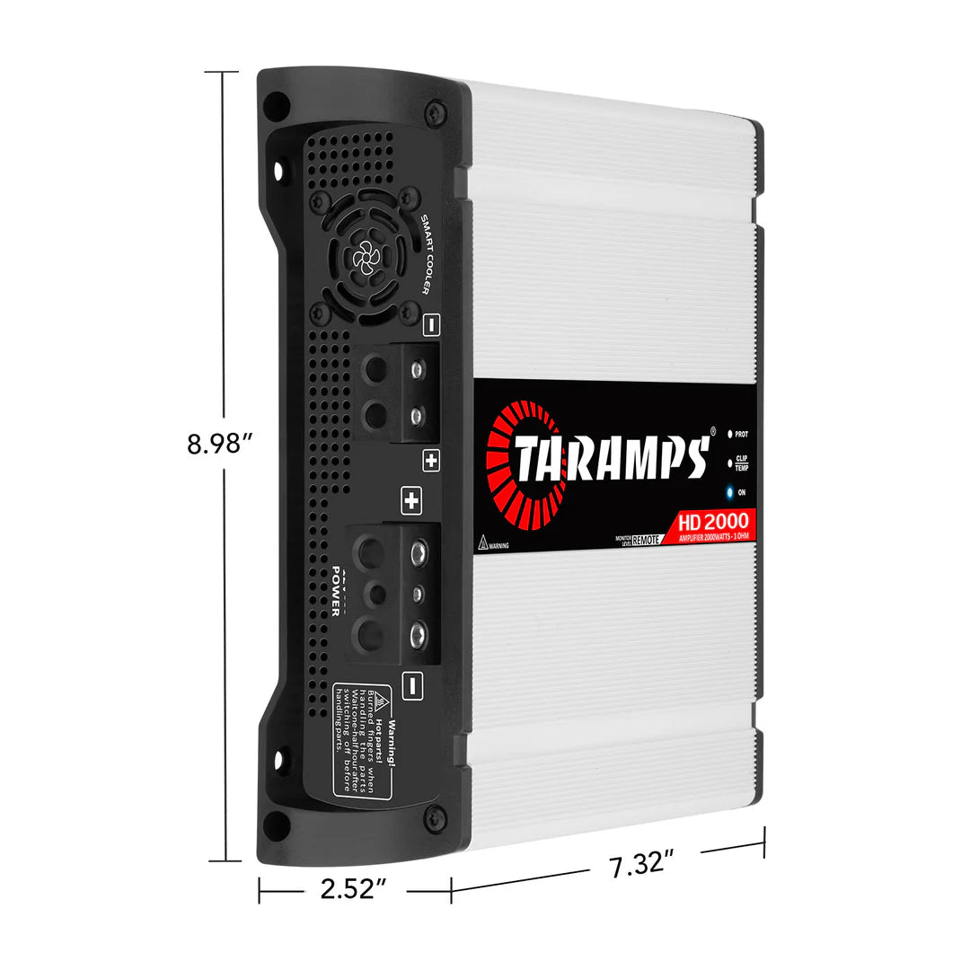 We present the HD 2000, an amplifier with the tradition and quality of one of the most renowned Taramps lines. It is perfect for you looking for power and versatility with 2000 WRMS at 12.6V DC (Nominal power with sinusoidal signal from 60Hz to 1KHz and THD <= 1% at the output). The amplifier is available in 1 Ohm, 2 Ohm and 4 Ohm versions that have a wide frequency response, which allows you to use it to play: Subwoofers, bass speakers, bass midrange, midrange, 6×9 ”, full ranges, phenolic drivers, titanium drivers, super tweeters, among many others. This means that you can use it in car stereos, trunk speakers, walls, trio speakers, bob speakers, etc. Live a fantastic sound experience, with the best cost benefit!