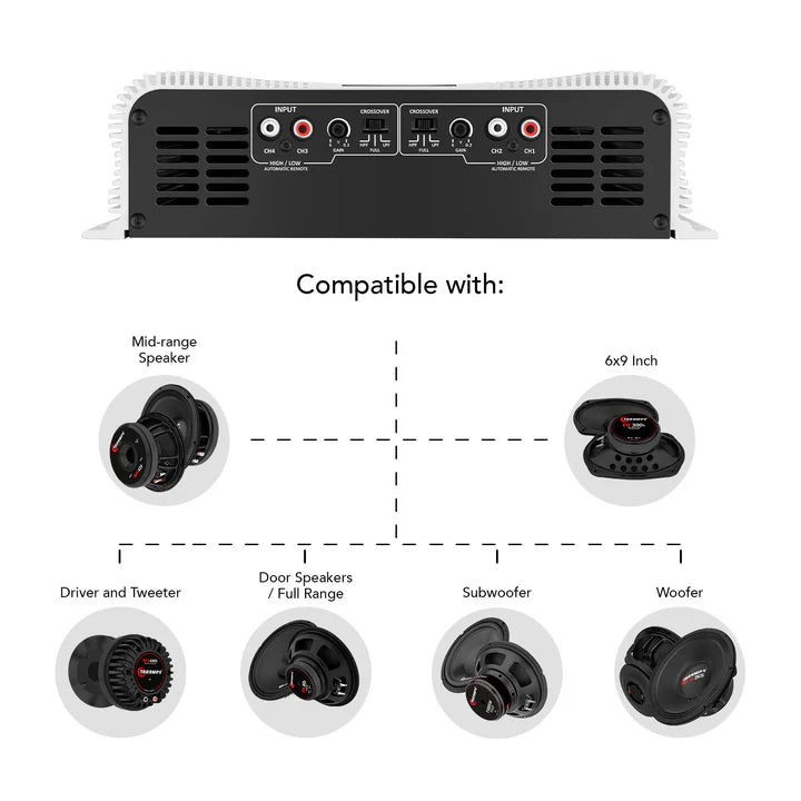3200W peak power ensures you get the volume and clarity you need. The TS-400x4 amplifier provides clean, distortion-free power across all channels.