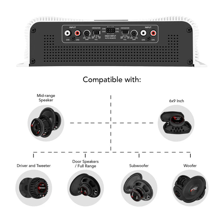 3200W peak power ensures you get the volume and clarity you need. The TS-400x4 amplifier provides clean, distortion-free power across all channels.