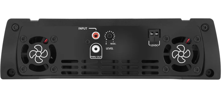 The amplifier has an input unbal that connects the RCA output, Thru output to send the same input signal to the other amplifier. Adjust the sensitivy of the amplifier input with LEVEL. Contains a positive amplifier pre power terminal and four internal ventilation fans.