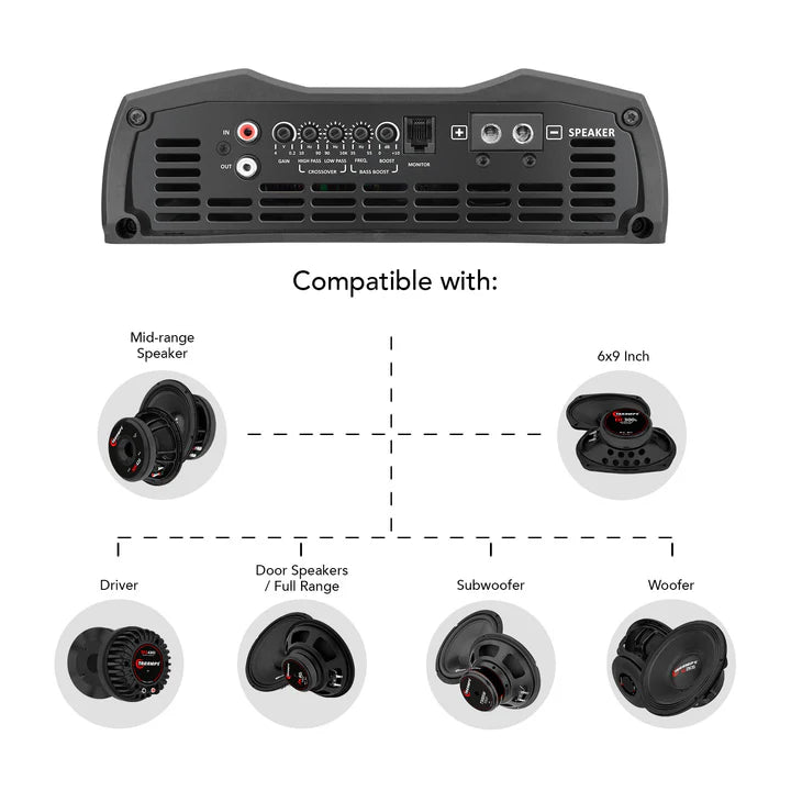- Engineered for Installations in Car Audio Systems, Motorcycles, Trucks. This amp is built Robust, mighty, making it a top choice for Subwoofers, Woofers, and Drivers.