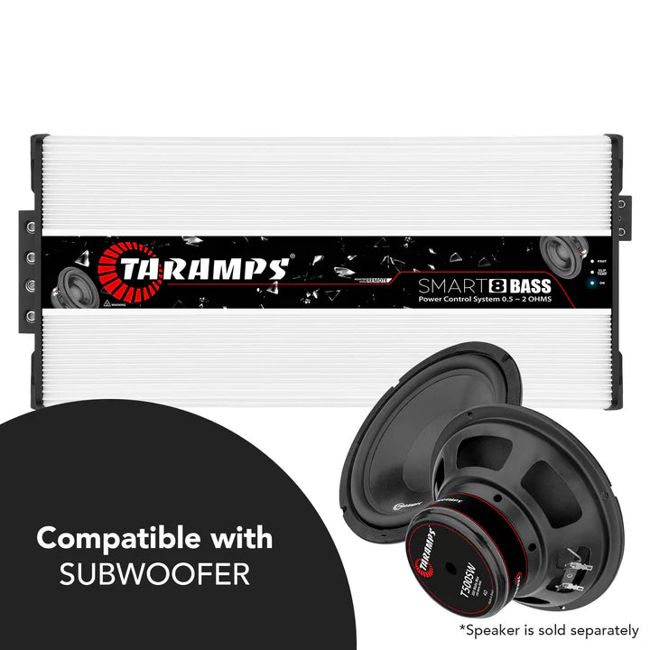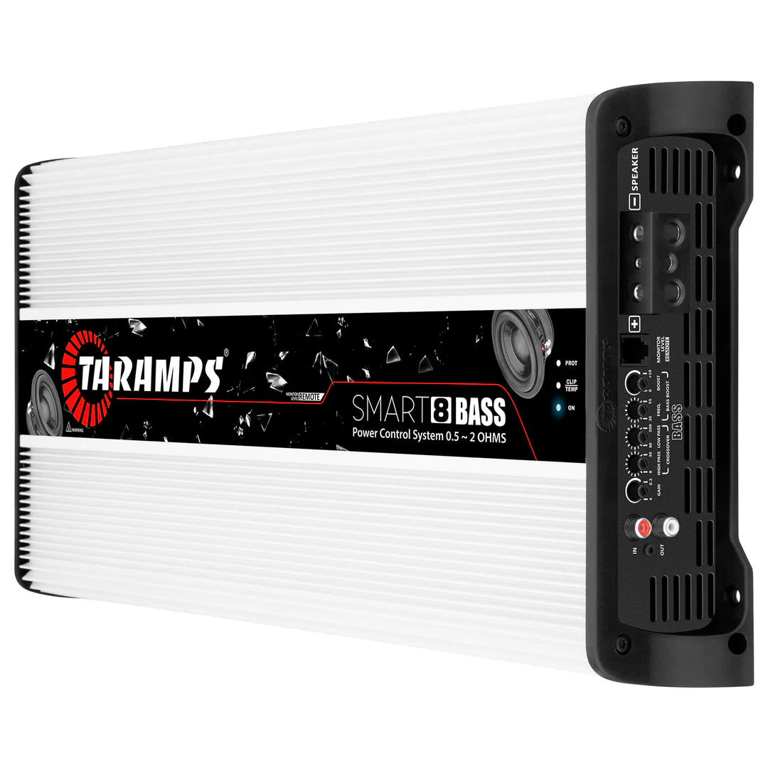 Unleash powerful, impactful bass with the Taramps Smart 8 BASS amplifier. This single-channel, multi-impedance amplifier delivers 8000 Watts RMS at any impedance between 0.5 and 2 Ohms. Featuring exclusive Power Control System technology for enhanced safety and quality at low frequencies, and compatible with LED Clip Monitor M1 and the new Monitor Level Remote, it ensures an outstanding sound experience.