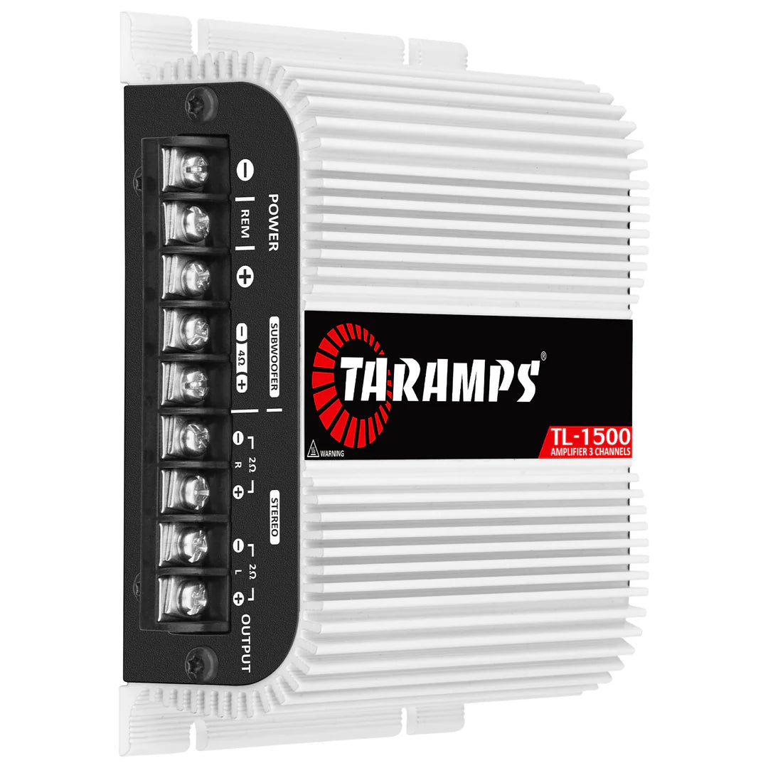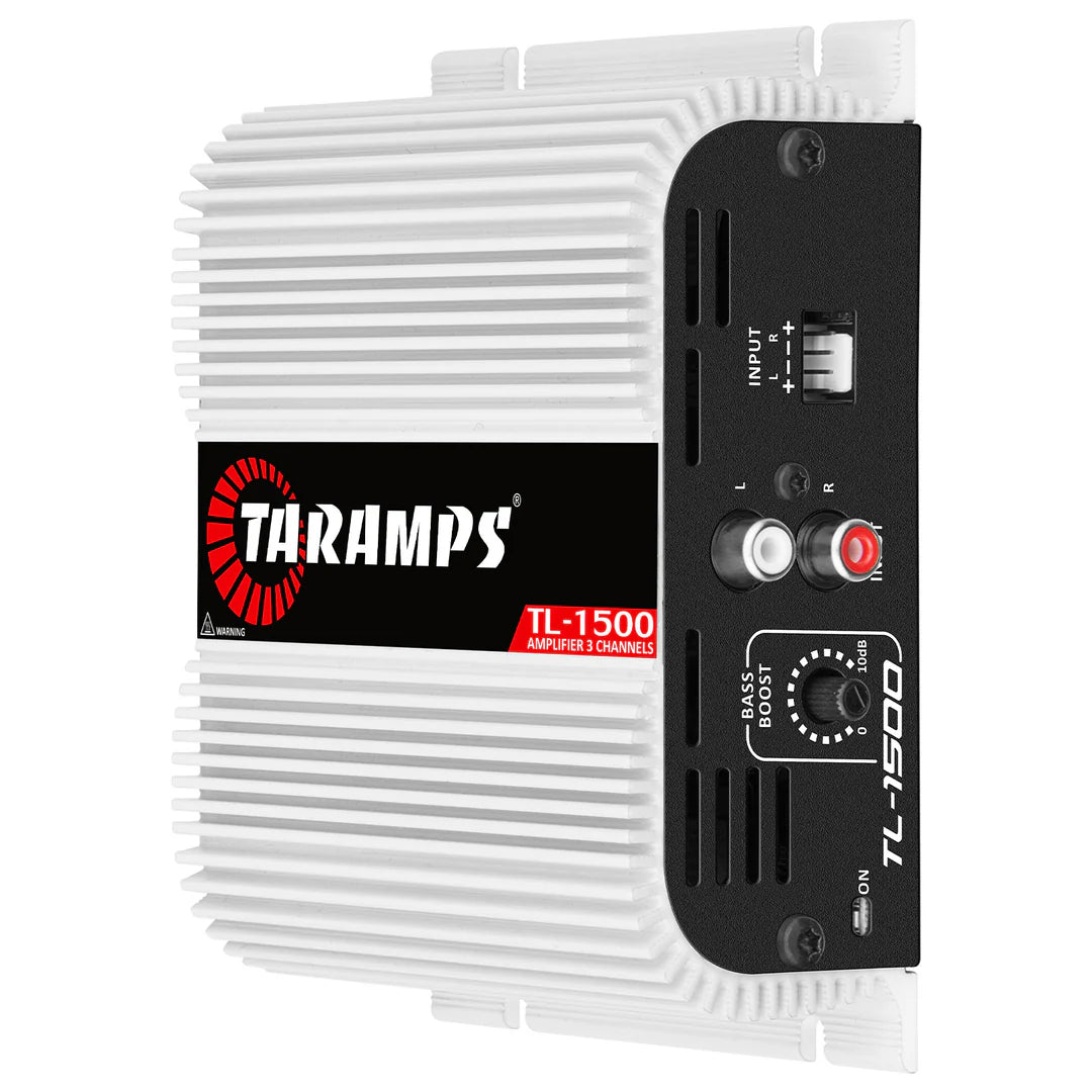 The TL 1500 amplifier from Taramps is intended for 3-channel car audio systems, and its features follow below: 2 stereo channels (L/R) at 95 Watts RMS, at 2 ohms each, with an active cutoff filter (HPF) at 90Hz to connect the door and trunk cover speakers; 1 SUB channel with 200 Watts RMS at 4 ohms, for subwoofer speakers. This channel is the result of the sum of the channels (L/R) with active cutoff filter (LPF) at 90Hz. It is a stereo amplifier, with a total power of 390 Watts RMS, FULL RANGE, playing all frequencies just the way you like.